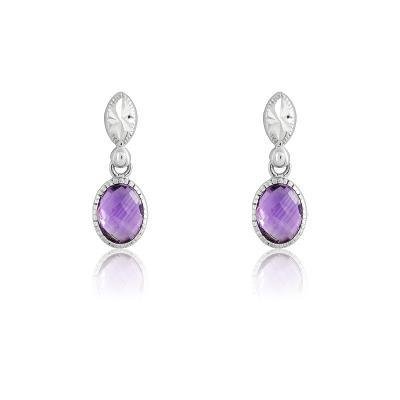 CLAD-4821H SS OVAL AMETHYST GEMSTONE EARRINGS
